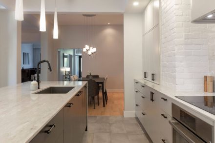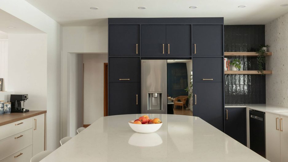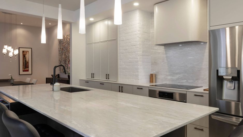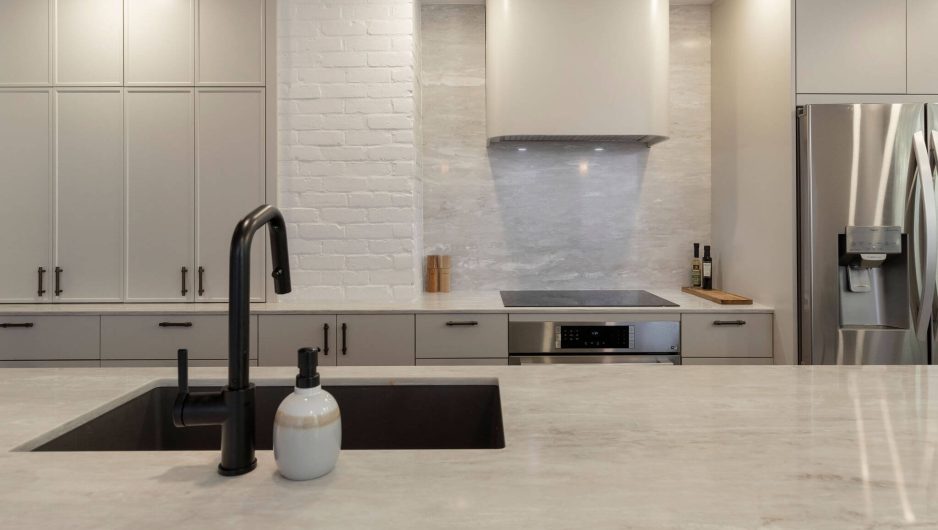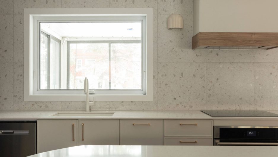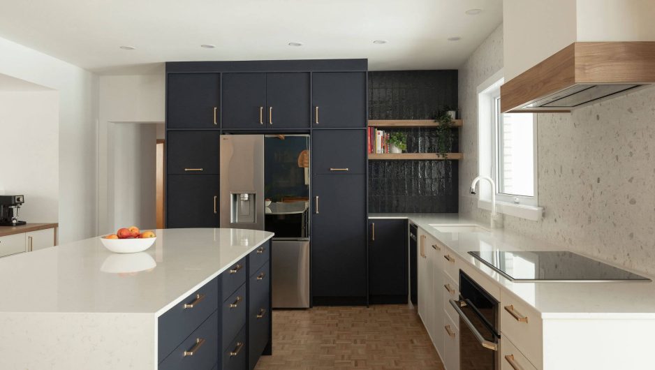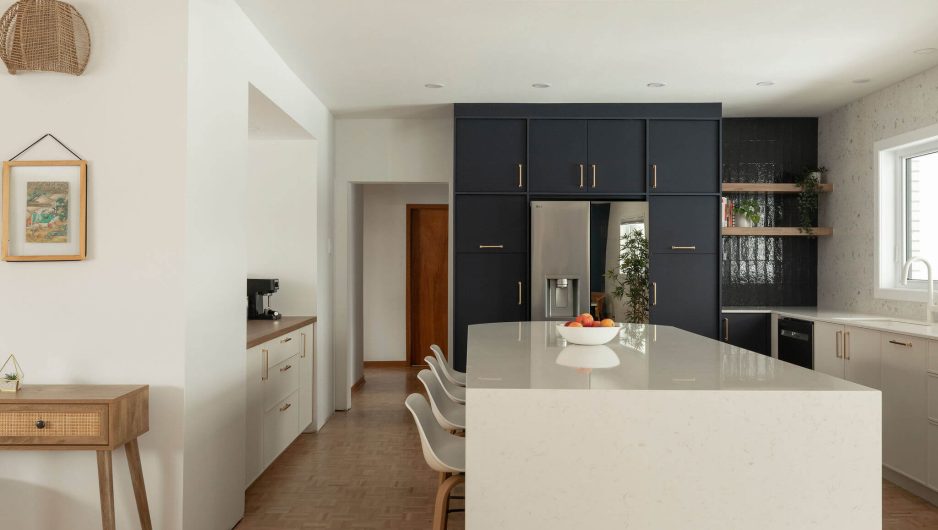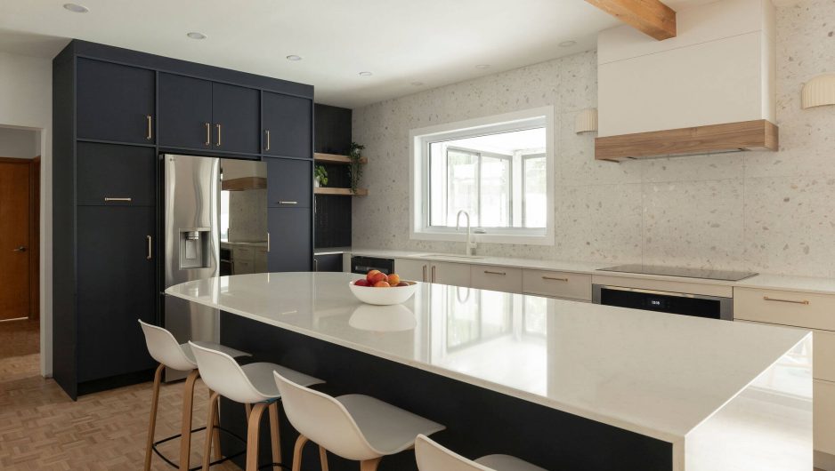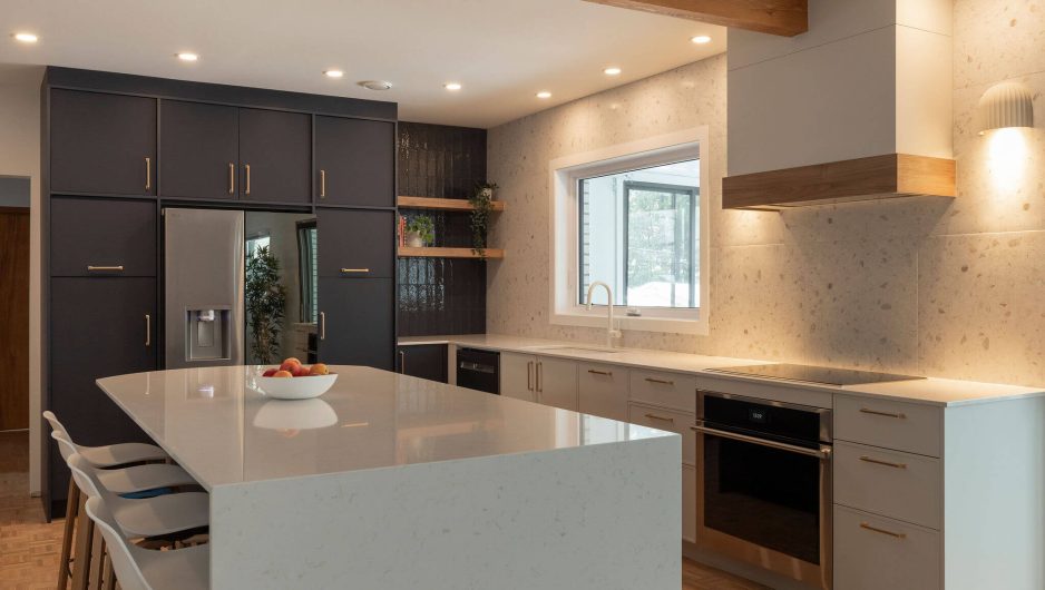 The rounded lines of the island countertop complete this balance by adding a touch of softness and facilitating smooth circulation.