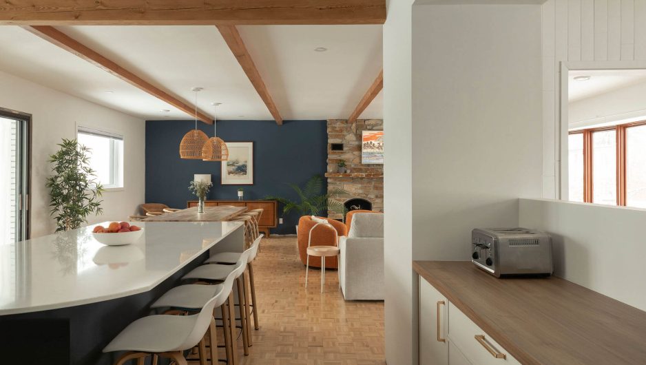 The true heart of the home, this family kitchen stands out with its modern design punctuated by unique details that echo the authentic charm of the house. Color takes center stage here: the combination of blue and wood infuses the space with a warm atmosphere while asserting its distinctive character.