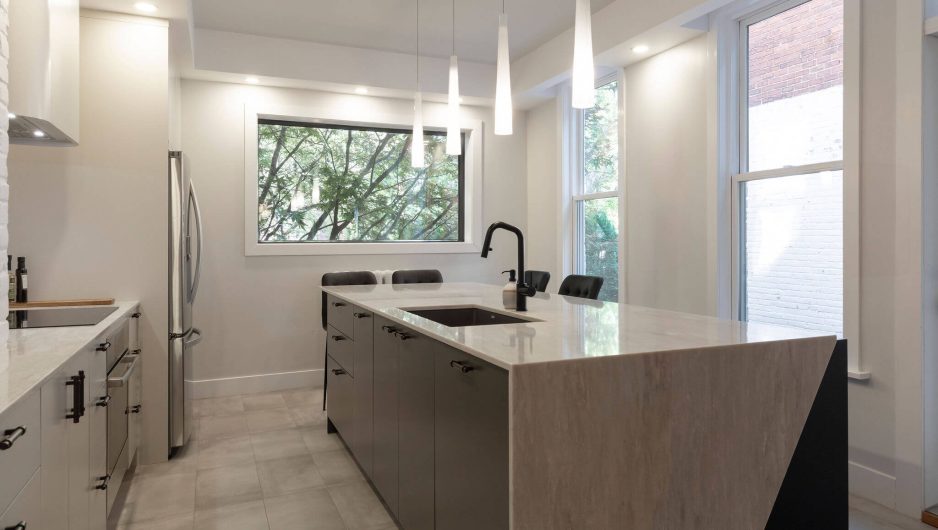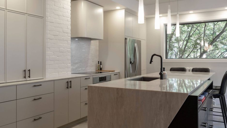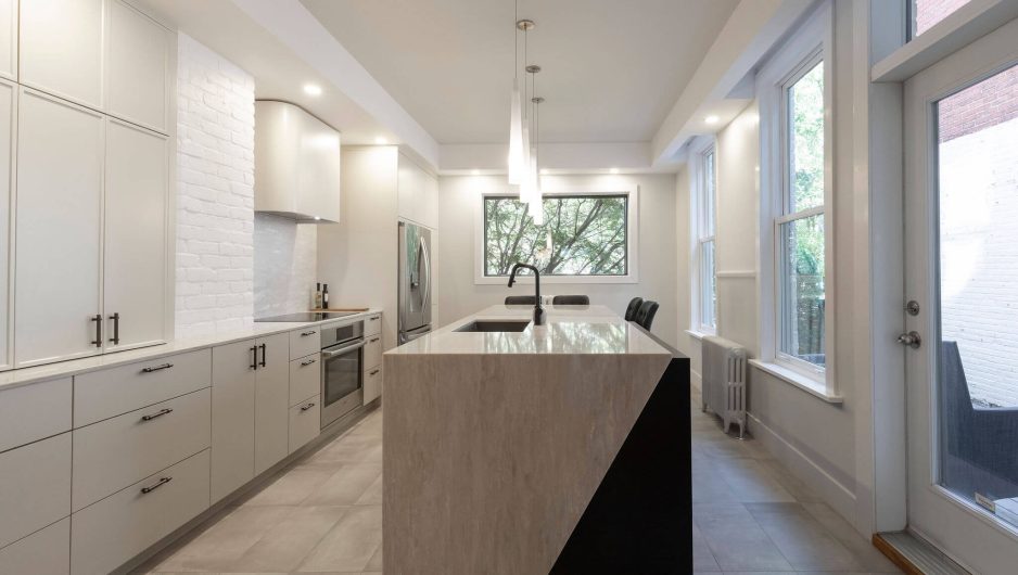 This renovated kitchen exemplifies the perfect balance between modernity and classic elegance. Designed to reflect the client’s minimalist taste, it combines clean lines and bright surfaces with traditional touches that highlight the character and charm of this older home.